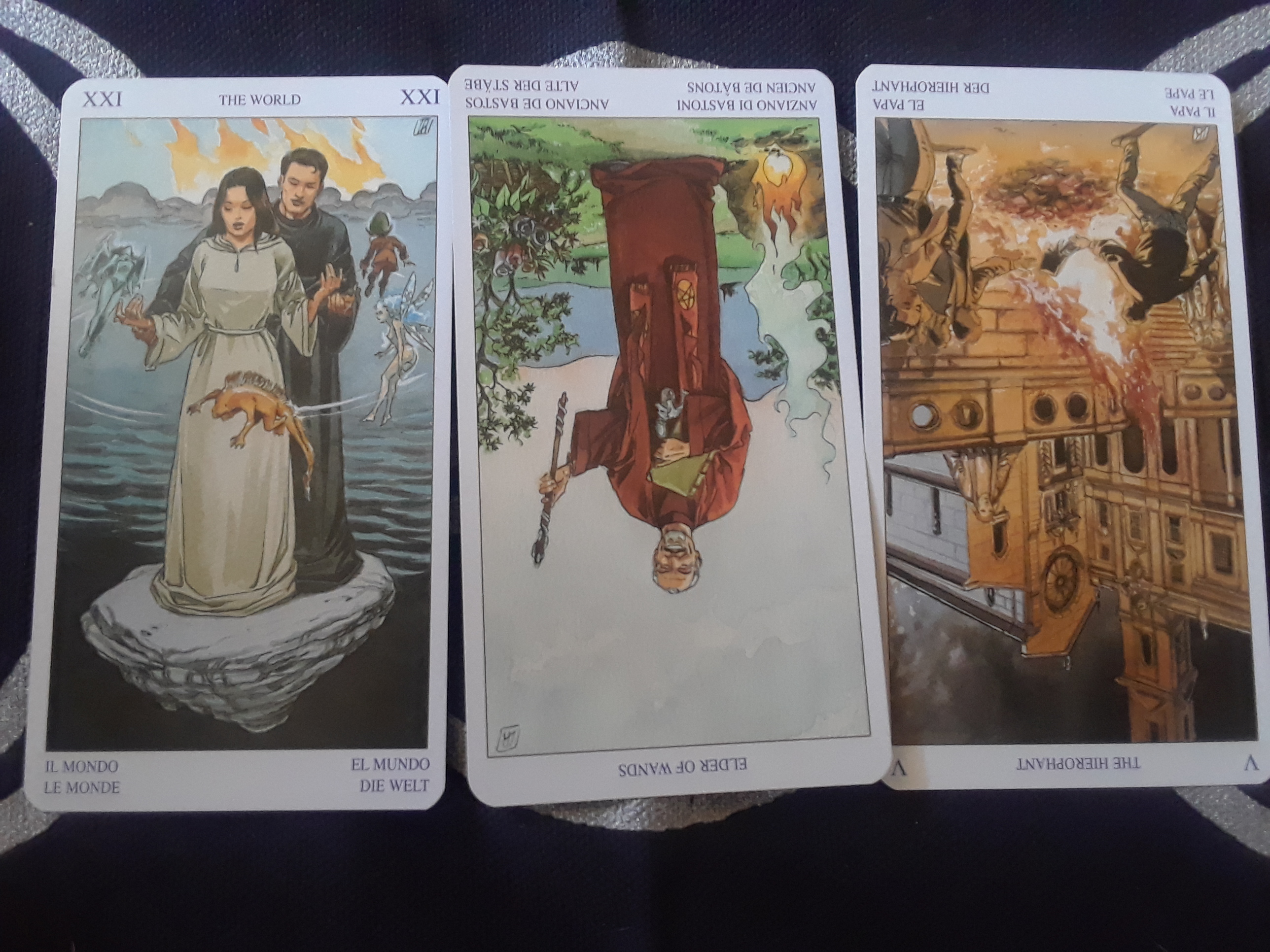 The World card shows a sense of balance in one’s life. When The World card shows in a reading, there is a completion in the challenges that you have come across over the last few years, months, weeks, or days. It is a good showing of self-empowerment moving forward and dealing with future challenges.